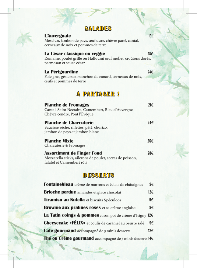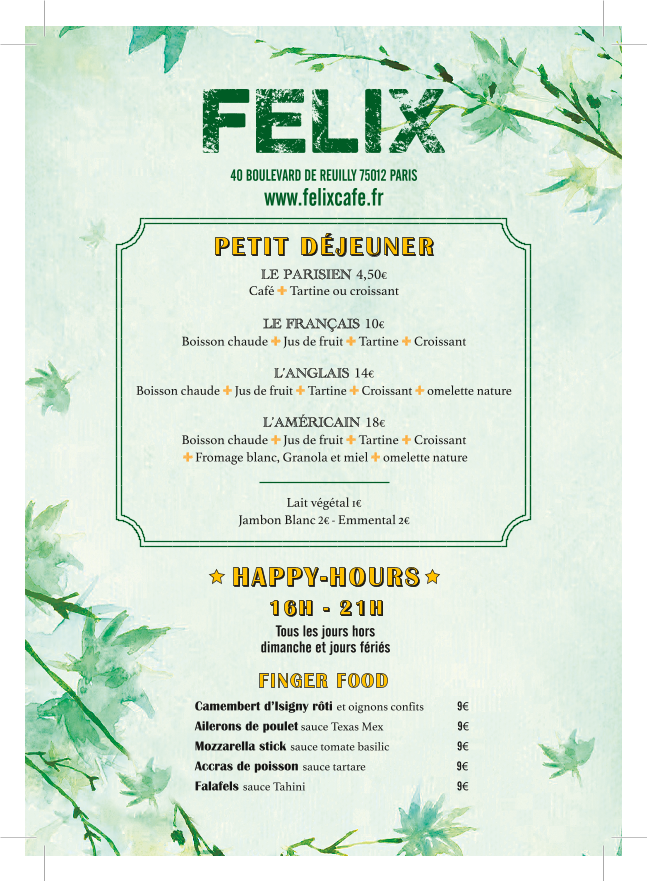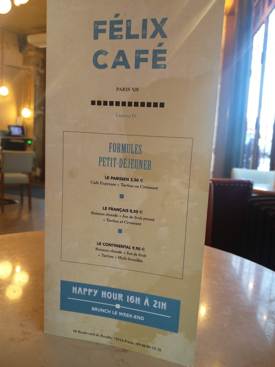 Félix Café - 75012 Paris Menu